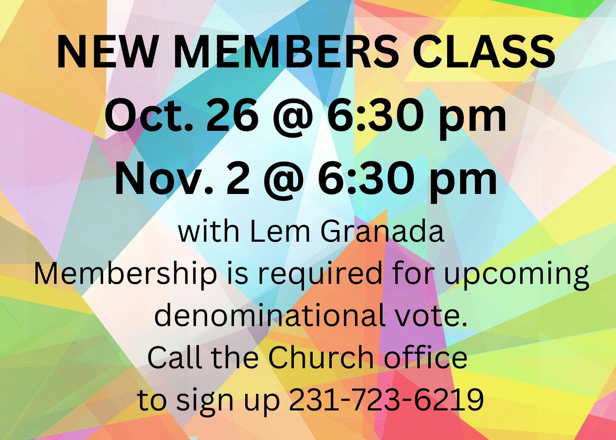 Membership Class Wednesday, November 2, 2022 6:30 PM 7:30 PM Manistee United Methodist Church 387 First St 49660 United States (map) Google Calendar ICS